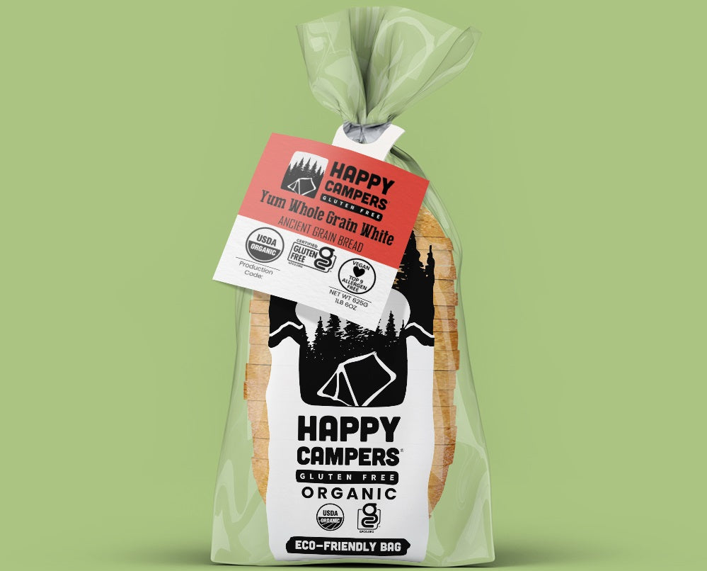 Since June 2024, all Happy Campers breads and buns are being packaged in bags made from a revolutionary plastic alternative material. This bag will completely break down in the landfill in less than 5 years! Click below to learn more.