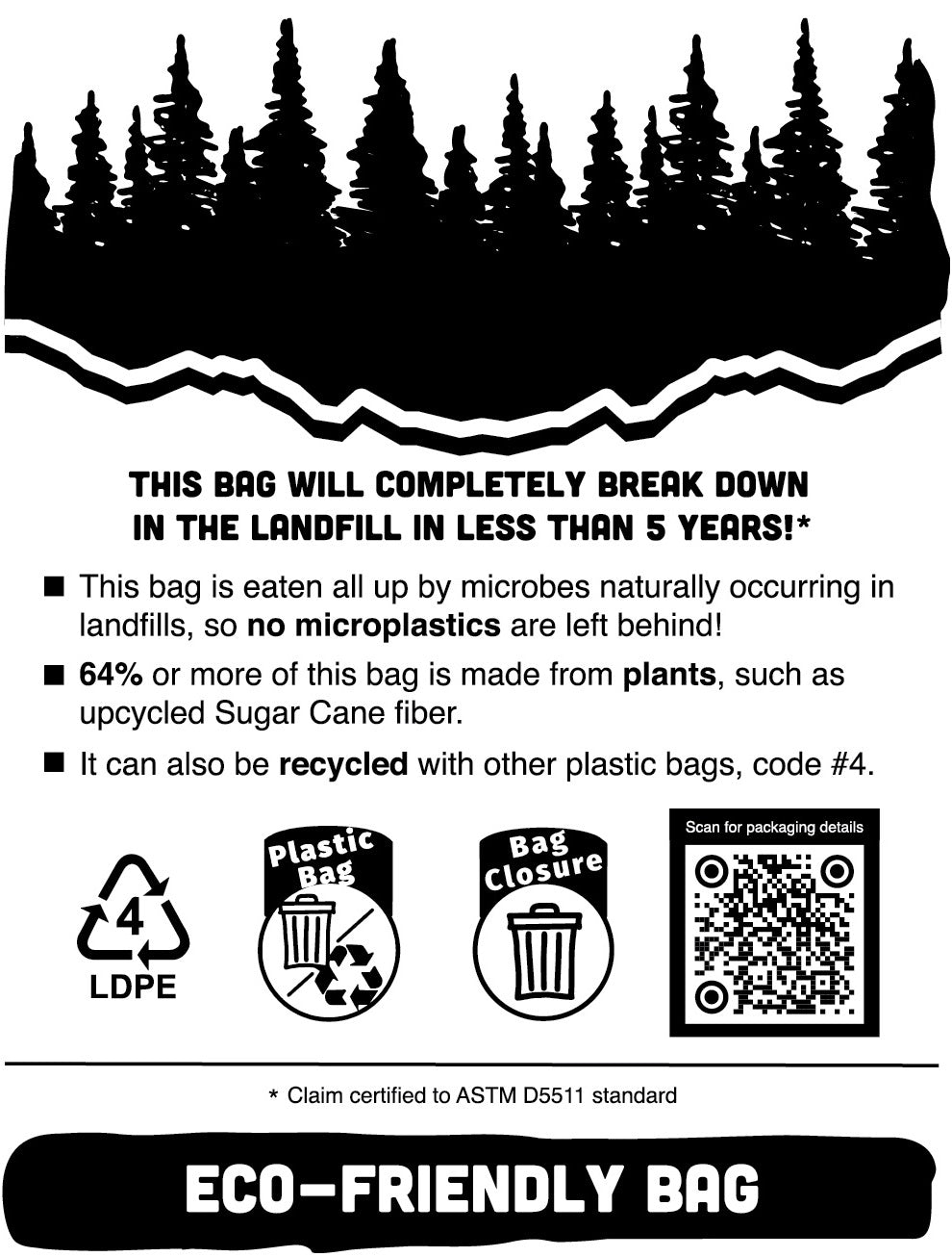 💚 Note about compostable bags: While we love composting, the current reality is that a vast majority of people do not compost and nearly all waste still ends up in landfills. With our new bag's end-of-life landfill solution, we believe it is the most environmentally friendly choice available today.
